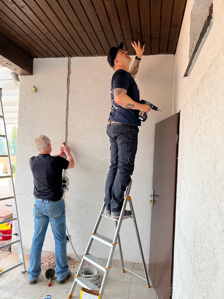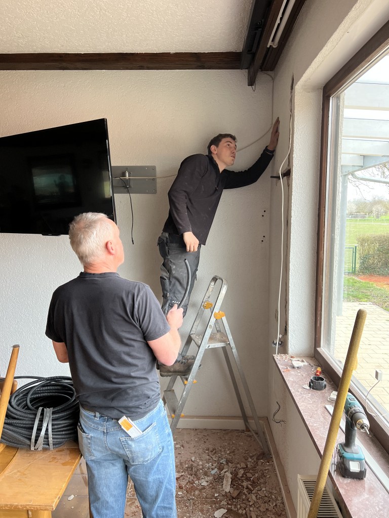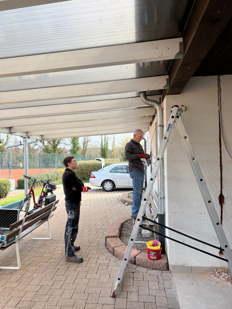 Zudem kommt, dass wir bevor nächste Woche durch die Malerei Manz das Clubheim gestrichen wird, die Aussenelektrik erweitert haben. Zusätzlich Spots um das Clubheim geben Sicherheit in der Dunkelheit, weitere Steckdosen mehr Funktionalität. Altbestände wurden demontiert, so dass das Clubheim bald in neuem Glanz erstrahlen kann. Wir halten euch auf dem Laufenden.