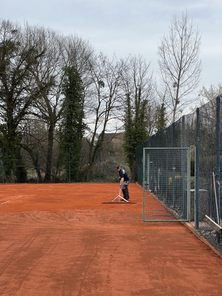 In den letzten Wochen hat sich einiges am Clubheim getan. Wir haben die Plätze fast fertig gerichtet. Der alte Sand wurde abgetragen, die Linien gerichtet und der neue Sand aufgetragen. Nun sollte es noch ein wenig Regen geben in den nächsten Wochen, so dass sich der Sand schön verdichtet.